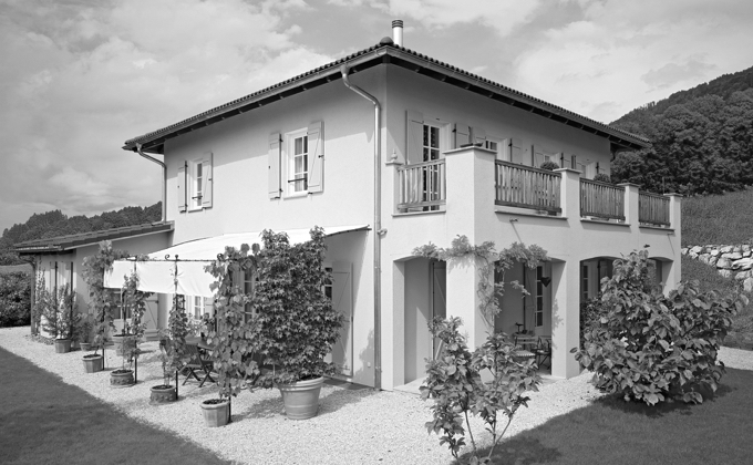 Den Ausschlag für diesen Entschluss gab die Geburt des zweiten Kindes. Der nun vierköpfigen Schweizer Familie wurde es in ihrer schönen Jugendstil-Wohnung einfach zu eng – ein Eigenheim musste her. Und damit war auch die Gelegenheit da, den lang gehegten Traum vom mediterranen Landhaus am Vierwaldstätter See zu verwirklichen. Als gelernte Architektin zeichnete Ute Lienert einen Grundentwurf und beauftragte eine Schweizer Firma mit der Umsetzung. „Die konnten mit unserem sehr individuellen Wunsch nach einem Landhaus im Provence-Stil allerdings überhaupt nichts anfangen“, erzählt Ute Lienert. Durch Zufall habe sie dann „diese wunderschöne WeberHaus-Villa“ in einer Wohnzeitschrift entdeckt und dachte sich sofort: „Das ist es doch. Da kann ich hingehen und sagen, so ähnlich will ich das auch haben.“ Damit stand die Entscheidung fest. Sie sagten der Schweizer Firma ab, fuhren zu WeberHaus nach Kindhausen und ließen sich bei ihrem Bauvorhaben beraten. Anschließend stattete die Familie dem Ausstellungsgelände von WeberHaus in Rheinau noch einen Besuch ab, um die künftige Villa „live“ in Augenschein zu nehmen.